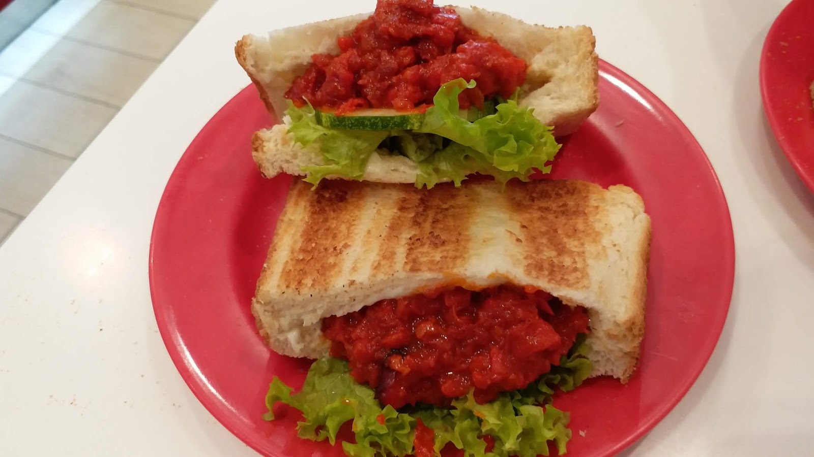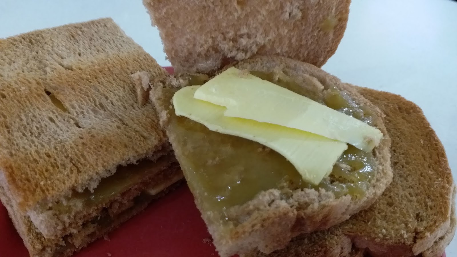 鷄肉义燒土司三明治(SGD 4) 义燒像香港义燒包的口感,把它夾在厚片白土司內,沒有很驚喜感,價位倒不便宜.