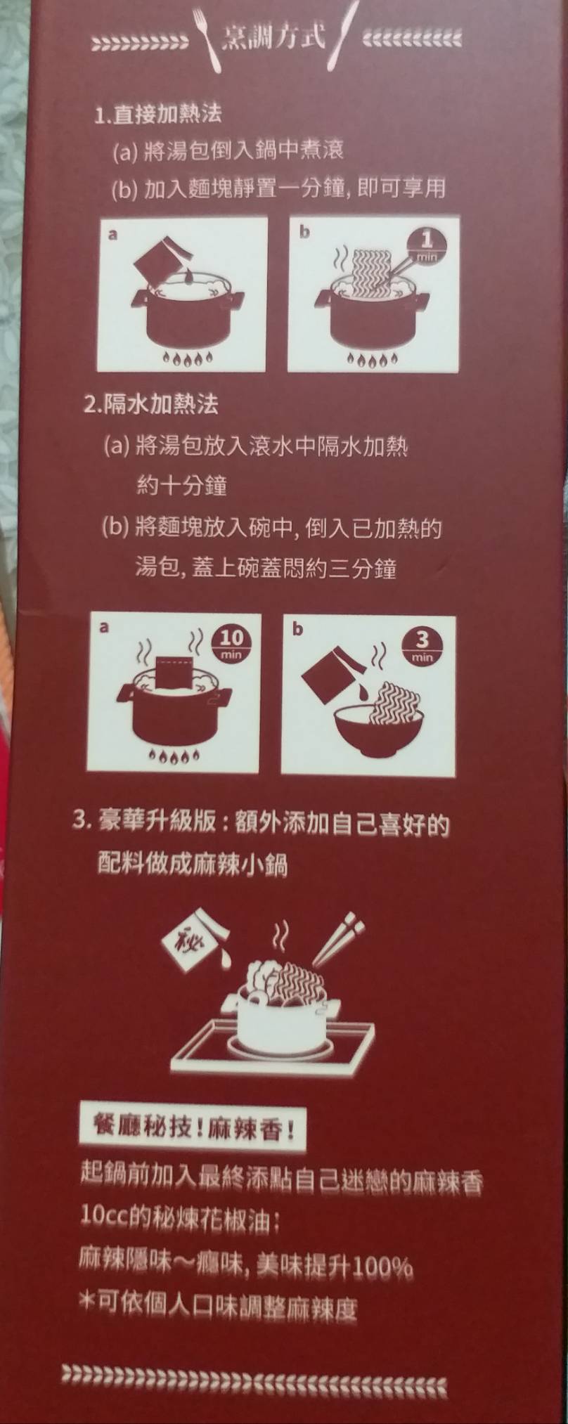 烹煮方法很簡單,包裝盒上有說明3種方法.